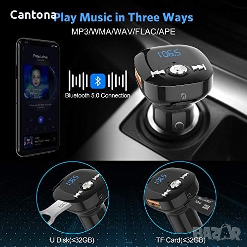 - Адаптерът за Bluetooth радио за кола използва усъвършенствания чип Bluetooth V5.0, за да осигури по-бързо сдвояване и по-стабилен звук в сравнение с други често срещани продукти на пазара. Надградената технология за предаване на Bluetooth V5.0 позволява бърза връзка и стабилният сигнал намалява фоновия шум, добавя повече вълнение, шок и забавление към вашето слушане.
