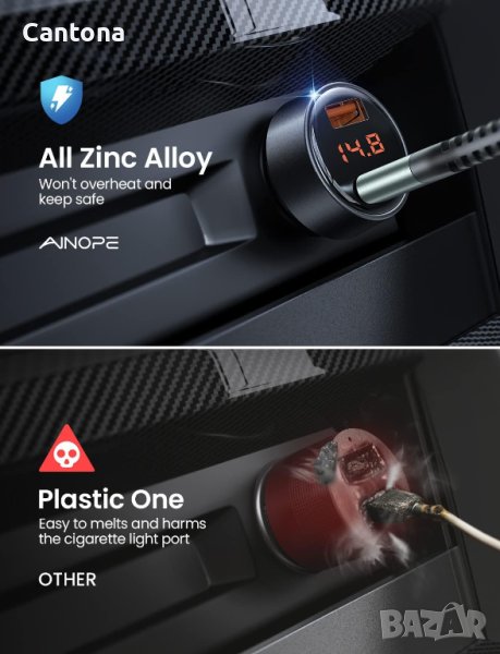 - Металното USB зарядно устройство за запалка няма да прегрее при високи температури, което го предпазва от топене и запалване, по-безопасно от пластмасата. Адаптерът за бързо зареждане AINOPE има множество защити срещу свръхток, презареждане, прегряване и високи температури, защитавайки безопасността на вашите устройства.