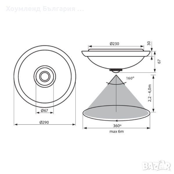 - Тип: Плафон със сензор за движение;