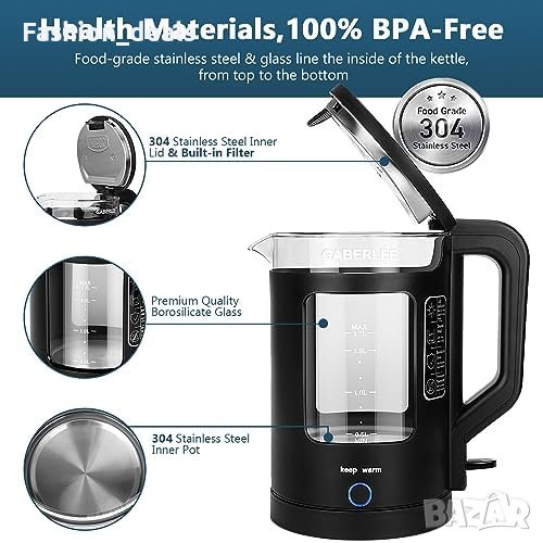 Нова Електрическа стъклена кана за вода 1,7л. 3000W Дом кухня Подарък Бързо нагряване