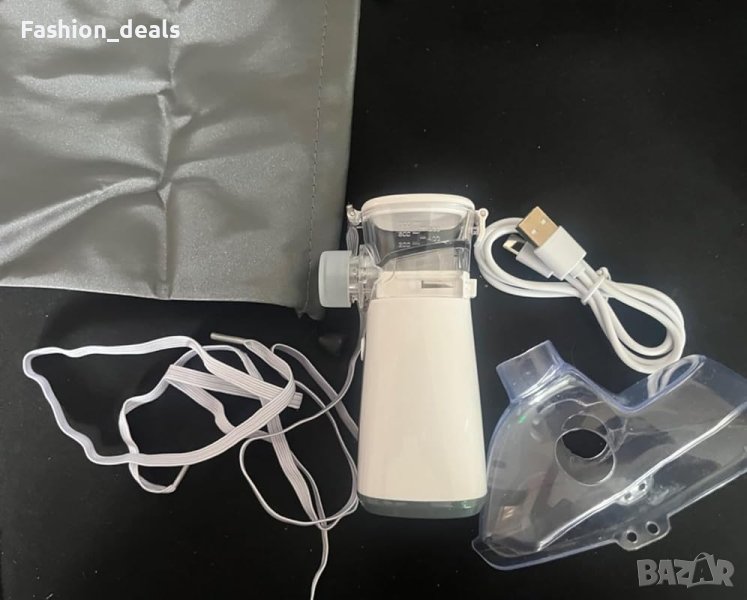 Пакетът включва апарат за мъгла с мрежа, мундщук, маски за лице за деца и възрастни, кабел USB тип C, въжета за носене, опаковъчна торбичка и ръководство за потребителя.