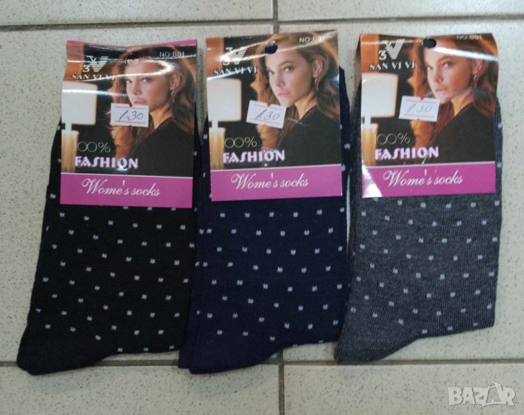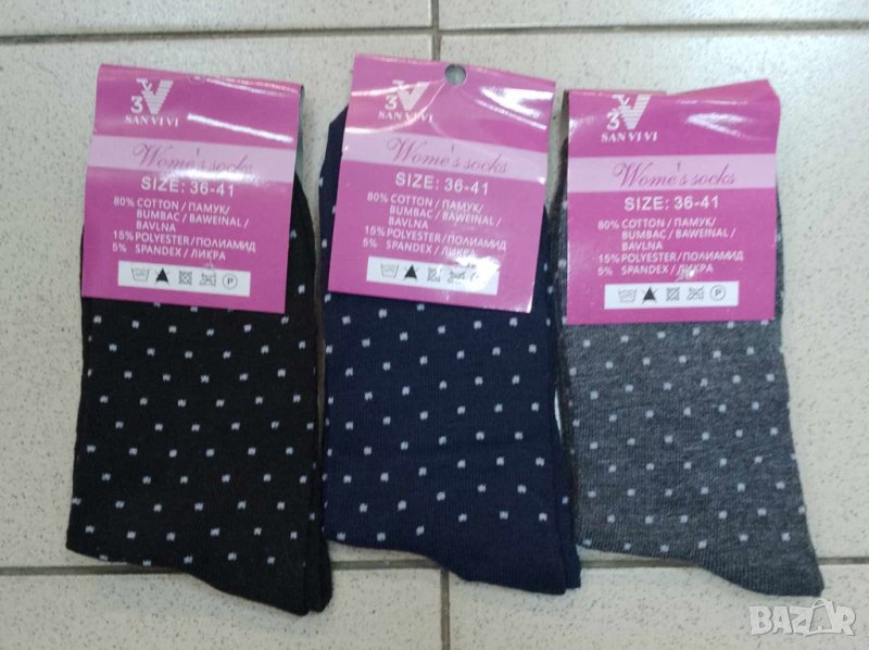Дамски памучни чорапи, № 36 - 41, състав: Памук 80%, Полиамид 15% и Ликра 5%.