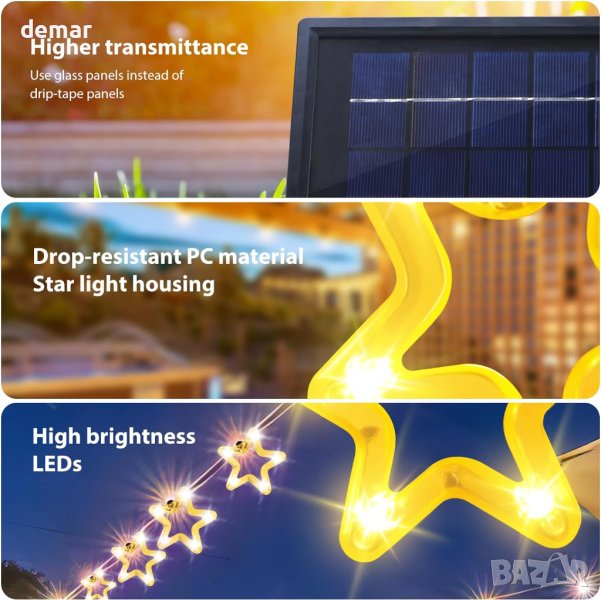 Освежете пространството си с тази универсална звездна лампа, подходяща за окачване или поставяне в земята, идеална за всяко време с водоустойчивия си дизайн. Отличаващ се със светодиоди с висока яркост, покрити от издръжлива звездна обвивка, той предлага осем регулируеми цвята и различни режими на мигане, за да отговарят на всеки повод, гарантирайки, че вашата градина или палатка остава жизнена и добре осветена. Със стъклен ламинат, покриващ слънчевия панел, тази светлина може да се похвали с по-висока пропускливост, подобрена ефективност на зареждане и дълготрайност в сравнение със своите събратя. Основно се захранва от слънчева енергия, включва се автоматично при здрач и се изключва на разсъмване, но също така предлага USB захранване за непрекъснато осветление по време на дъждовни дни или за използване на закрито.