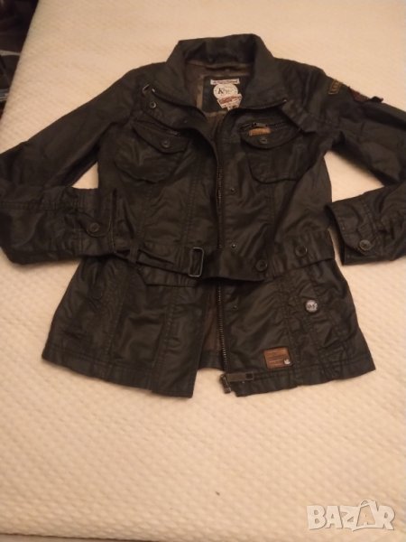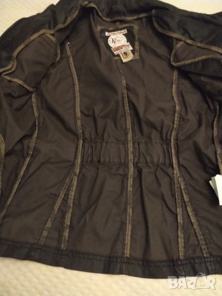 Якето е 100% оригинално ( не реплика ) Страхотна кройка тъмно кафяво ,непромокаемо а подплата от памук .Има много джобове закопчаване с цип и копчета .Стой по тялото с колан.Обличала съм го 2,3 пъти но вече ми отесня .Дължина 63 см ,мишници 44 см ,рамена 34 см ,ръкав 62 см .