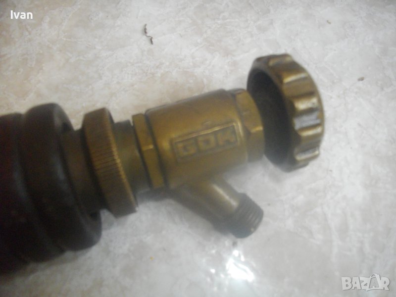 ОПИСАНИЕ на газова горелка с дървено покритие. 129 лв. Турско профеионално производство. Старо качество, висок клас. Ползвана, със запазен външен вид и отлично техническо/работно състояние. Въртелива функция на 360 градуса.Масивна, изцяло от бронз с дебело масовно дървено покритие. Марка -GOK. Реглаж бронзов спирателен кран отзад.Резба за присъединяване на маркуч ф 8 мм. Конкатна дюза отпред - ф 20 мм. Дължина на горелката - 280 мм.