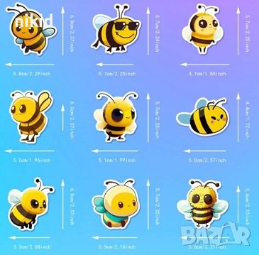 50 бр Пчели Пчелички Пчела самозалепващи лепенки стикери за украса декор ръчна изработка → Обява 42359471