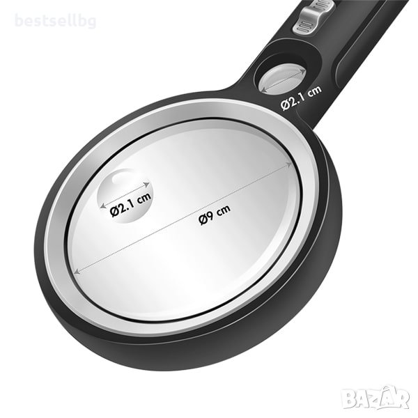 Удобен и Лесен за Използване: С един плъзгащ се ключ за включване и изключване на LED и UV светлините, тази лупа е изключително лесна за управление. Просто натиснете бутона и се наслаждавайте на увеличеното виждане.