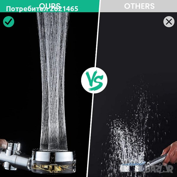 Душ главата с турбо вентилатор кара водния поток да генерира поток под налягане през въртящото се колело, увеличавайки скоростта на водния поток, като по този начин увеличава водното налягане.
