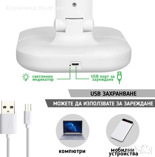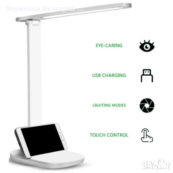 Настолна лампа с чупещо рамо със стилен и атрактивен дизайн. Мултифункционалната лампа е комбинирана със стойка за телефон. Тя притежава три нива на ярокост, а светлината излъчена от светодиодите е благоприятна за човешкото зрение.