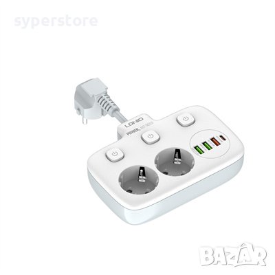 Разклонител 220V, зарядно, 2 гнезда и 3 USB + Type C, с ключ LDNio SE2435 SS000196 - Fast Charge