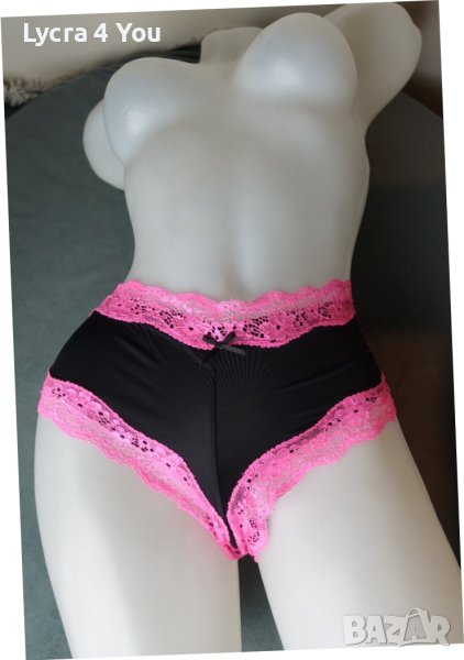 M/L луксозни черни бразилиани с розова дантела → Обява 42371392