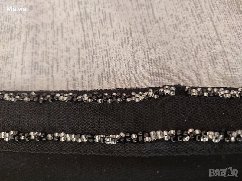 Размера е височина 91см, колан талия 31см. Номер на етикета няма, затова давам размери в см. Има малка забележка, снимана, липсват две или три маниста, но няма проблем, тъй като всичко е черно и са захванати индивидуално и другите не могат да паднат.