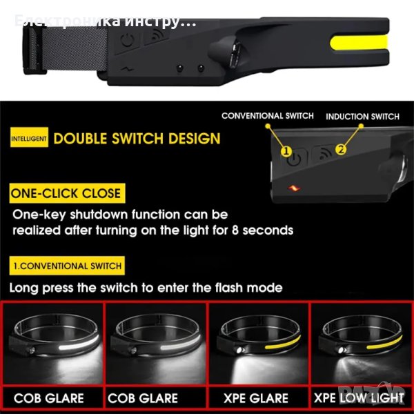 Челник 2в1 BL-G28-XPE + COB със сензор, батерия и USB зареждане, за риболов и къмпинг FPSH