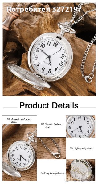 NOUSEG винтидж гравиран джобен кварцов часовник THE GREATEST DAD + верижка, снимка 1 - Мъжки - 42376501 NOUSEG винтидж гравиран джобен кварцов часовник THE GREATEST DAD + верижка, снимка 2 - Мъжки - 42376501 NOUSEG винтидж гравиран джобен кварцов часовник THE GREATEST DAD + верижка, снимка 3 - Мъжки - 42376501 NOUSEG винтидж гравиран джобен кварцов часовник THE GREATEST DAD + верижка, снимка 4 - Мъжки - 42376501 1/4