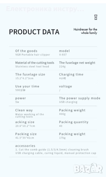 Професионална машинка за подстригване VGR 937