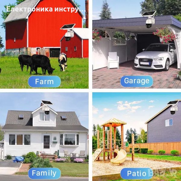 Соларния панел работи с 12000 mAH батерии тип 18360. IR диоди за нощно наблюдение до 30 метра и детайлна картина в дневен режим.