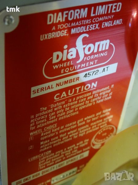 Даденото устройство служи за профилиране на абразивен диск посредством диамант. Diaform апаратът се предлага в комплект с наличните принадлежности и в оригинален (от производителя) дървен шкаф.