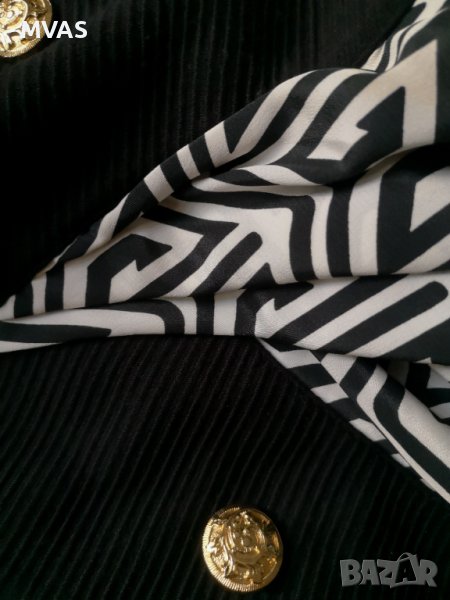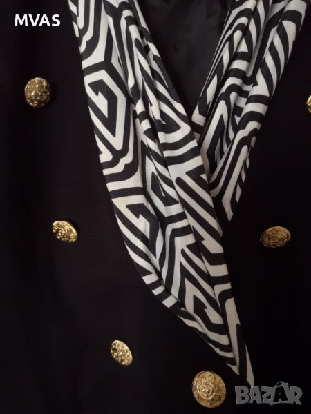Черно релефно, черно бяла яка, златни копчета.