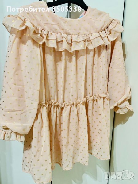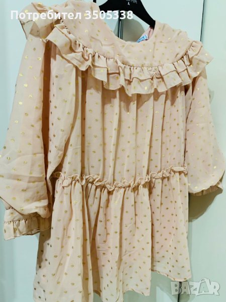 Красива и елегентна рокличка за малки госпожици на испанската марка Mayoral в цвят “пудра”, и златни точици. В отлично състояние. Ръст 122 см, 7 г.