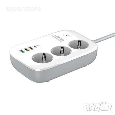 Разклонител 220V, зарядно, 3 гнезда и 3 USB + Type C, WiFi с ключ LDNio SE3452 SS000197- Fast Charge