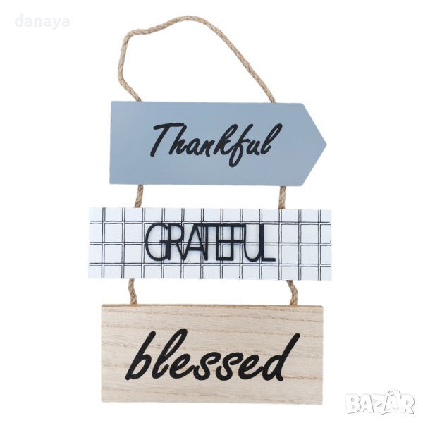 Дървени декоративни плочки за закачане с различни надписи – “Don’t worry Be HAPPY”, “God BLESS OUR HOME”, “Smile, Love, Enjoy”, “Thankful Grateful Blessed”. Чудесна украса и декорация за всеки дом и идея за подарък.