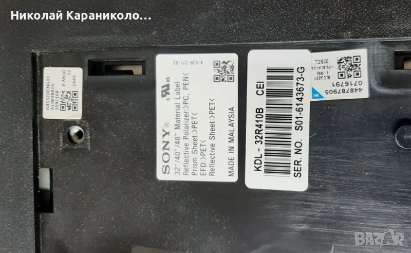 Продавам телевизор SONY KDL-32R410B за части по причина-счупена матрица/LC320DXJ(SF)(A9).Редовни съответно: