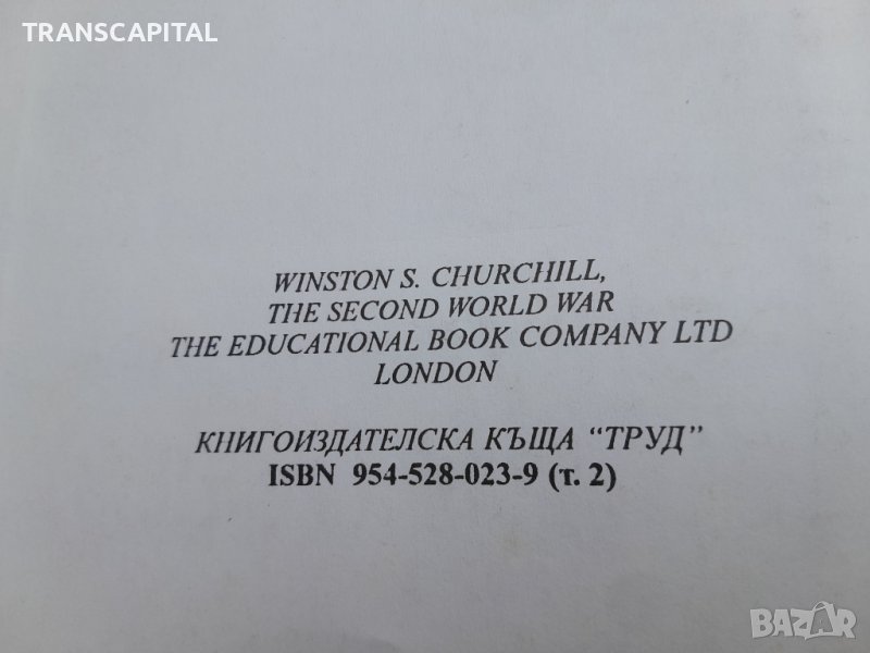 Уинтстън Чърчил. 3 тома с по 600 страници всеки, от том втори липсват първите 36 страници. На някой места , изрази са подчертани с химикал. Твърда корица с много събития описани в трите тома. Цена за всички 3 тома 30 лева