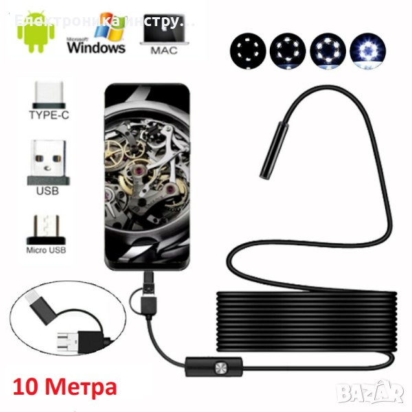 10 Метра ендоскоп за телефон и таблет micro USB, type C