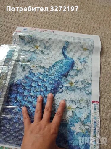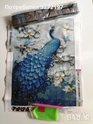 Комплект 5D диамантено пано/картина-рисуване по номера Паун,30х40см.