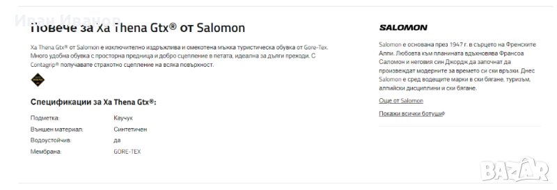 XA Thena GTX от Salomon е по-нов модел на класическия дизайн с