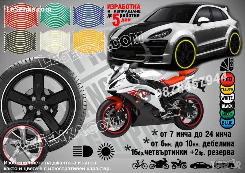 Светлоотразителни кантове ленти за джанти автомобил джип мотор АТВ светещи фолио жълти → Обява 42394140