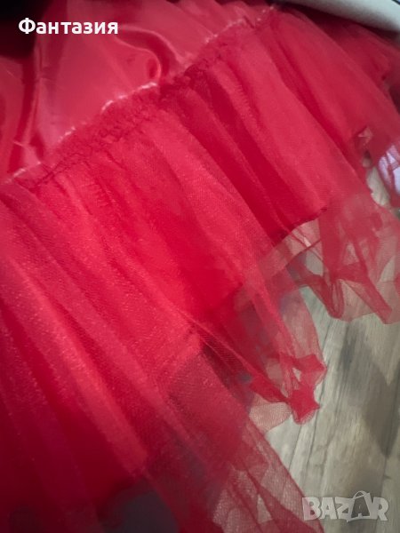 Червена кожена пола на фирма Contrast.Закопчава се чрез скрит цип в задната и част,а отпред е с огромна красива пандела.Размер за 128см.Отдолу е с подплата с тюл,за да стои красиво.