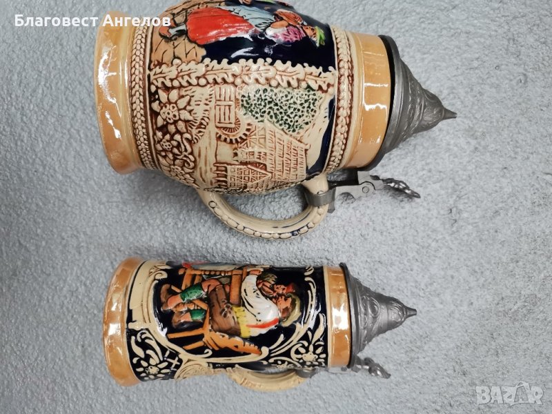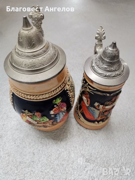 Немски халби с релефна декорация, височина 14 и 16 см. вместимост 120 и 350 мл.
