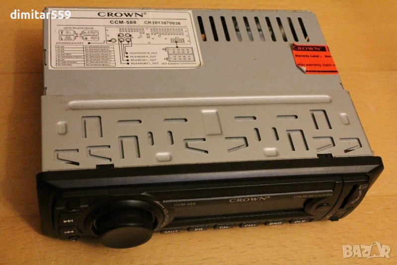 Продавам употребявано във перфектно състояние, видно е и от снимките радио за кола марка CROWN. Ползвано е много малко, почти като, ново. Има вход за флашка USB както и слот за карта памет. Всичко по него е работещо без забележки. Ето ви техническите му характеристики: Вид: Авторесийвър, USB Да, Тунер: FM, Брой канали: 4, Изходна мощност на канал, W: 15, Поддържани формати: MP3, WMA, Други: Червена, синя, зелена подсветка на бутоните , Изход за усилвател Часовник, AUX IN. Цената на която, го продавам е 40 лв, без коментари и бартери. Ако имате интерес резервирайте във сайта, като напишете адрес за доставка и вид куриер, също потвърдете и по телефона който, е: 0877487040! Можете да пишете и в формата за съобщения, към продавача срещу обявата във сайта. На всички желая лек и хубав ден!