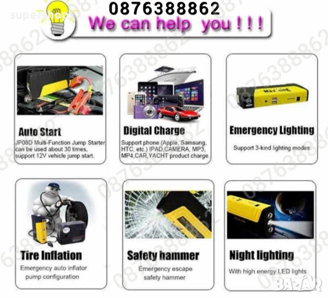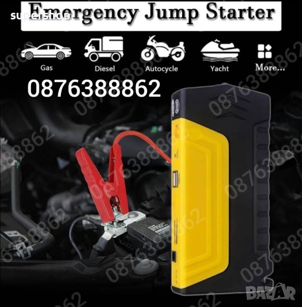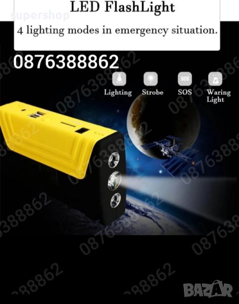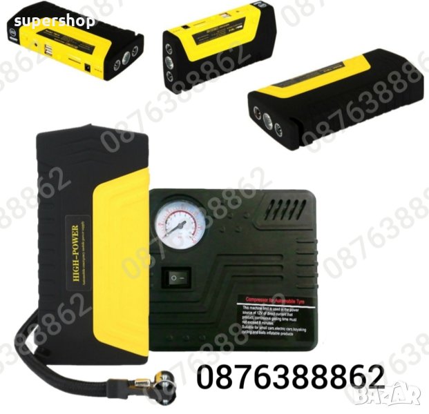 Автомобилен авариен комплект Джъмпер - Извънредна помощ при авария , висока мощност и надеждност. Комплект стартерно устройство High Power Jump за кола + компресор.