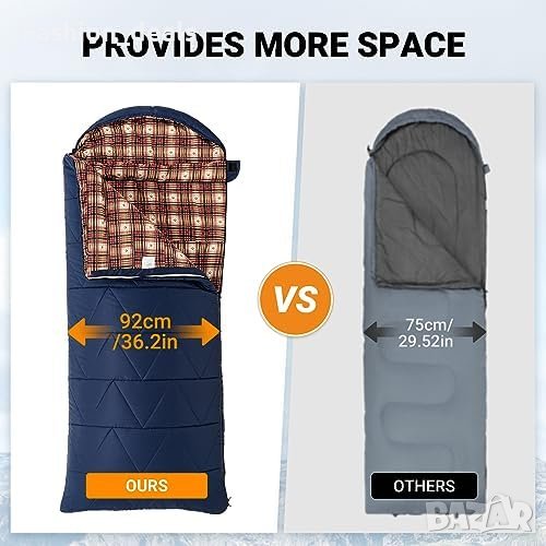 спален чувал с големи размери за възрастни (220x92 см).