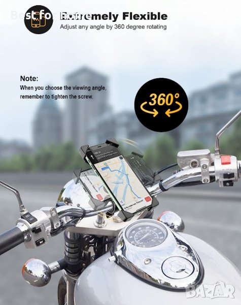 【Здрава и сигурна】Скобата се доставя с 4 опорни ъгъла. Уникалният дизайн на този държач ще захване телефона здраво дори и на неравни пътища, предотвратявайки падането му по време на каране.