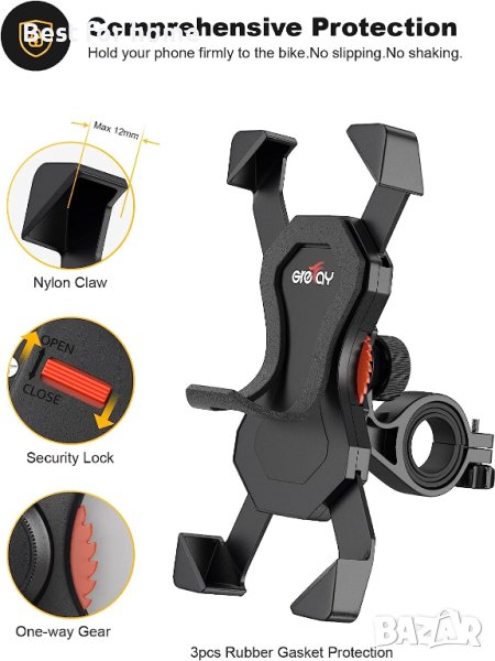 【Универсална съвместимост】Поставка за телефон за велосипед Grefay съвпада със смартфон с ширина между 3,5-6,5 инча, за iPhone 14, iPhone 14 Plus, iPhone 14 Pro, iPhone 14 Pro Max,iPhone 13 1 2 Pro Max Mini Xs XR X 8 Plus 7 6s 6, Samsung Galaxy S20/S10 Plus/S10/S10E/S9 Plus/S9/S8 Plus/S8/Note 9/Note 8/S7 Edge.Google Pixel, Huawei и др.