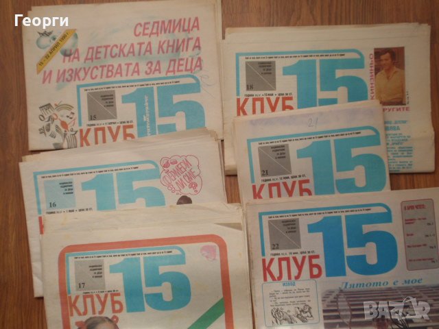 - брой 15 от 17 април 1990 - 16 страници огледален брой с 8 страници "Клуб 15" и 8 страници "Детство" - липсва 1 лист (стр. 7-8 от "Клуб 15"), цена 5 лв.