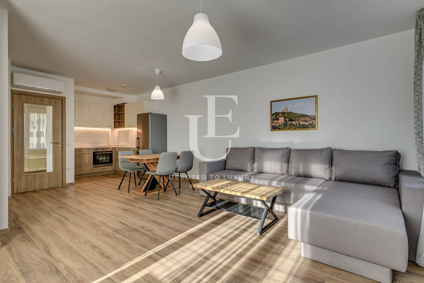 Апартаментът е с площ от 153 кв.м. и се състои от: голямо входно антре, голям хол с кухня и трапезарна част, две просторни спални, две бани, голяма тераса, мокро помещение. Ref. ID:21233