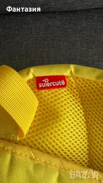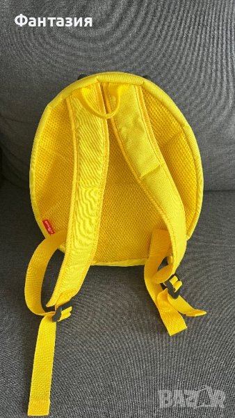 Раницата е слагана точно веднъж за снимки.Много е сладка :жълта калинка.Много е удобна с две отделения на джобчета от вътрешната страна.Унисекс е.