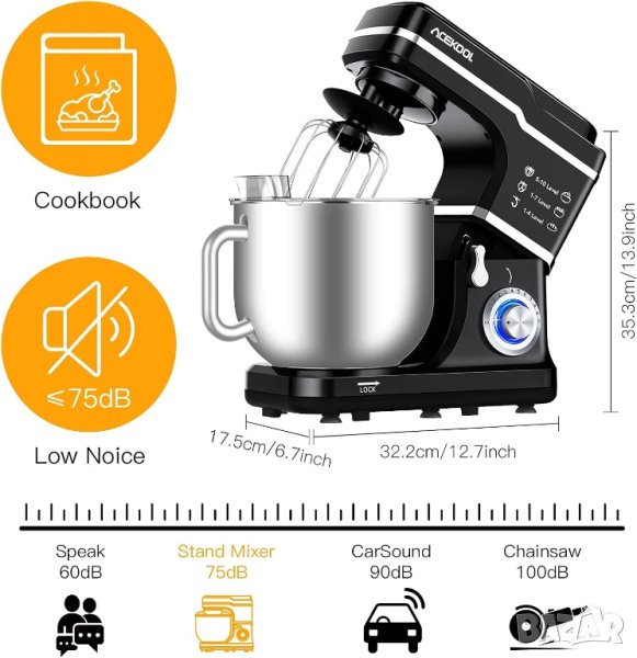 【Накланяща се глава и външен дизайн】 - Пекарната за сладкиши Acekool с утежнена основа и неплъзгащи се крачета остава стабилна дори при високи скорости, без да се хлъзга. Дизайнът на накланящата се глава ви позволява лесно да добавяте съставки към купата за смесване и е лесен за инсталиране и разглобяване. LED светлината се използва като индикатор за мощност.