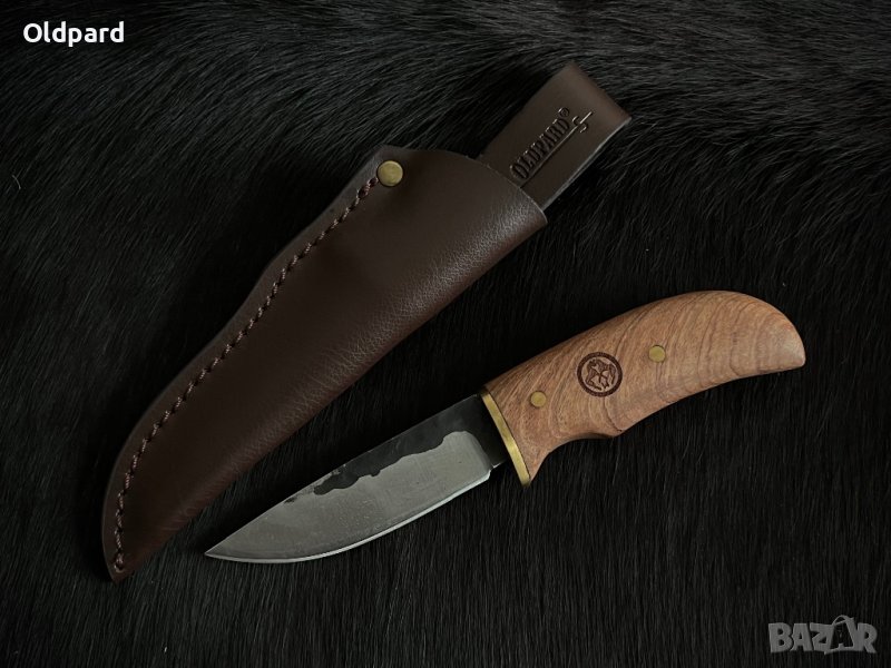 Ловен, кемпинг, outdooor нож във финландски стил - Oldpard Finland Forest Knife. Острието е изработено от кована стомана 7Cr17. Ергономична дръжката е дървена.. Дължина на острието 9,0 см, обща дължина 18,2 см. Дебелина на острието 4,2 мм. Традиционна финлансдски кожена кания с пластмасова вложка. Този нож е надежден помощник във всички горски пътувания и приключения.