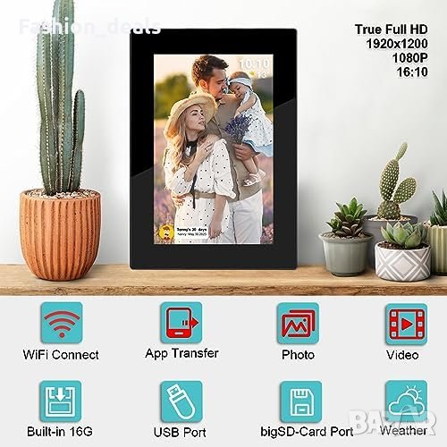 Нова Цифрова фоторамка WiFi 10.1 инча 1080P Автоматично завъртане Подарък