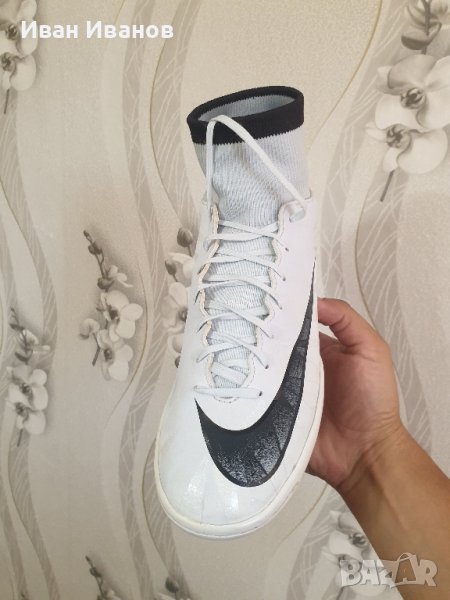 Обувките Nike MercurialX Victory VI DF IC са предназначени за игра на настилки за футзал. Горната част на модела е изработена от олекотен синтетичен материал Trophy Touch, който е мек, еластичен и изключително устойчив на износване. Микрорелефът, даден на горната част на ботушите, ви позволява да усещате по-добре топката, когато влезе в контакт с крака ви. EVA стелката има добра абсорбция на удари и насърчава удобното положение на крака вътре в шиповете. Анатомичната кройка създава удобно прилягане на крака. Гумената подметка не оставя следи.