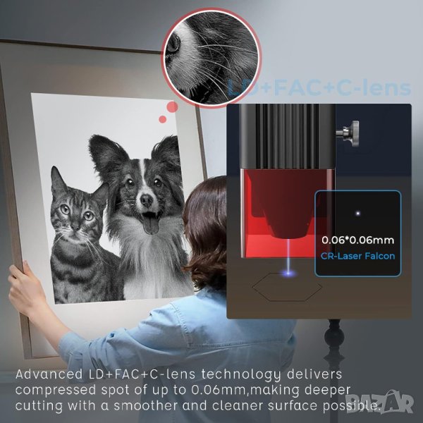 Подобрена матрица с 6 лещи компресира фокусното петно само до 0,06 мм. Това