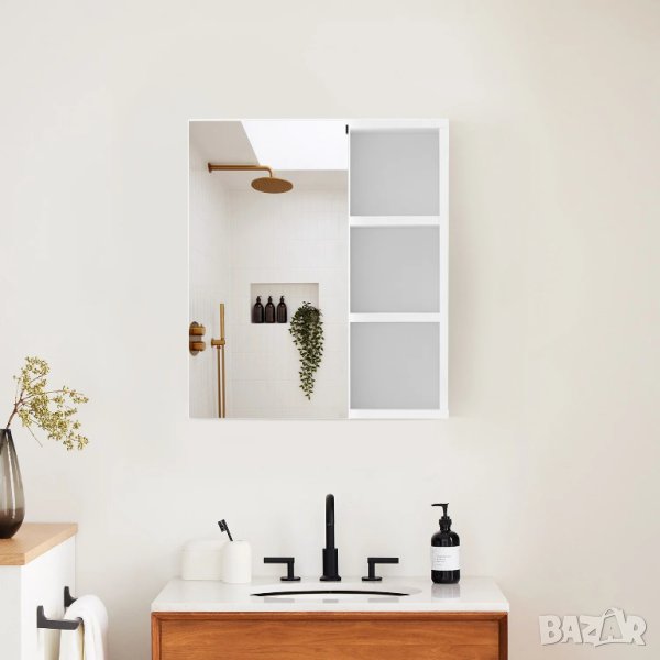 Горен стенен шкаф за баня с три странични рафта и