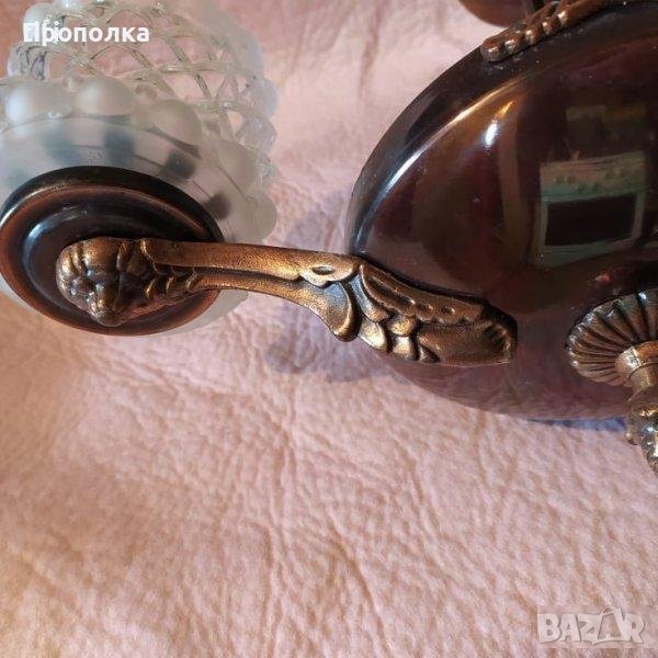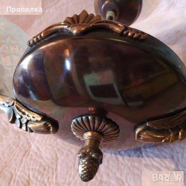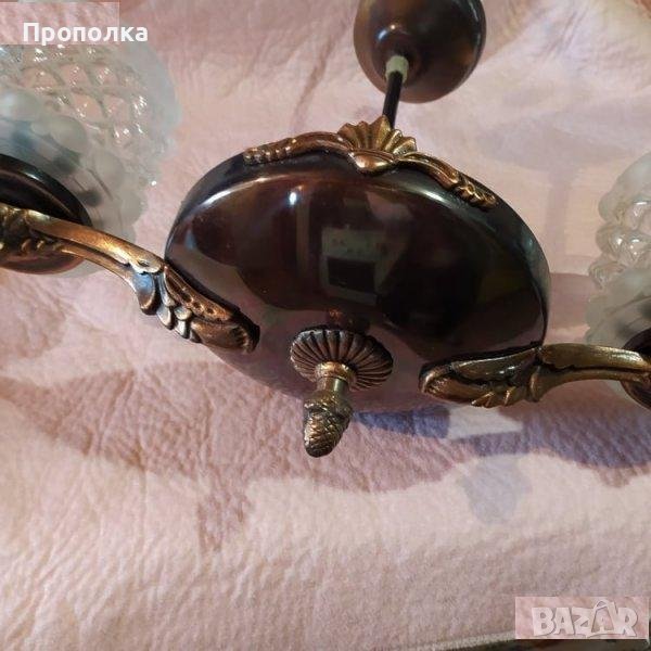 Меден полилей, състоянието му е мн.добро (снимки), за две крушки с цокъл Е27 . С оригиналните си абажури.