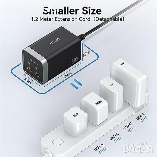 150W PD3.1 USB C щепсел с 2 порта USB C и 2 порта USB A.