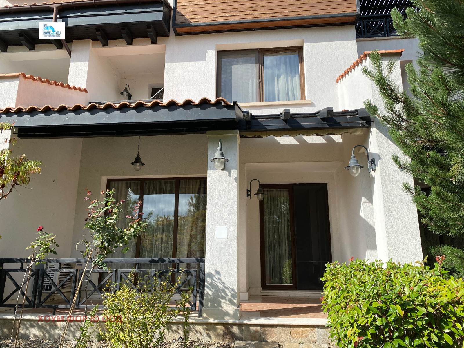 - на първи етаж: просторен хол с кухня и трапезария, гостна тоалетна, перално помещение и голяма тераса с достъп до градина;